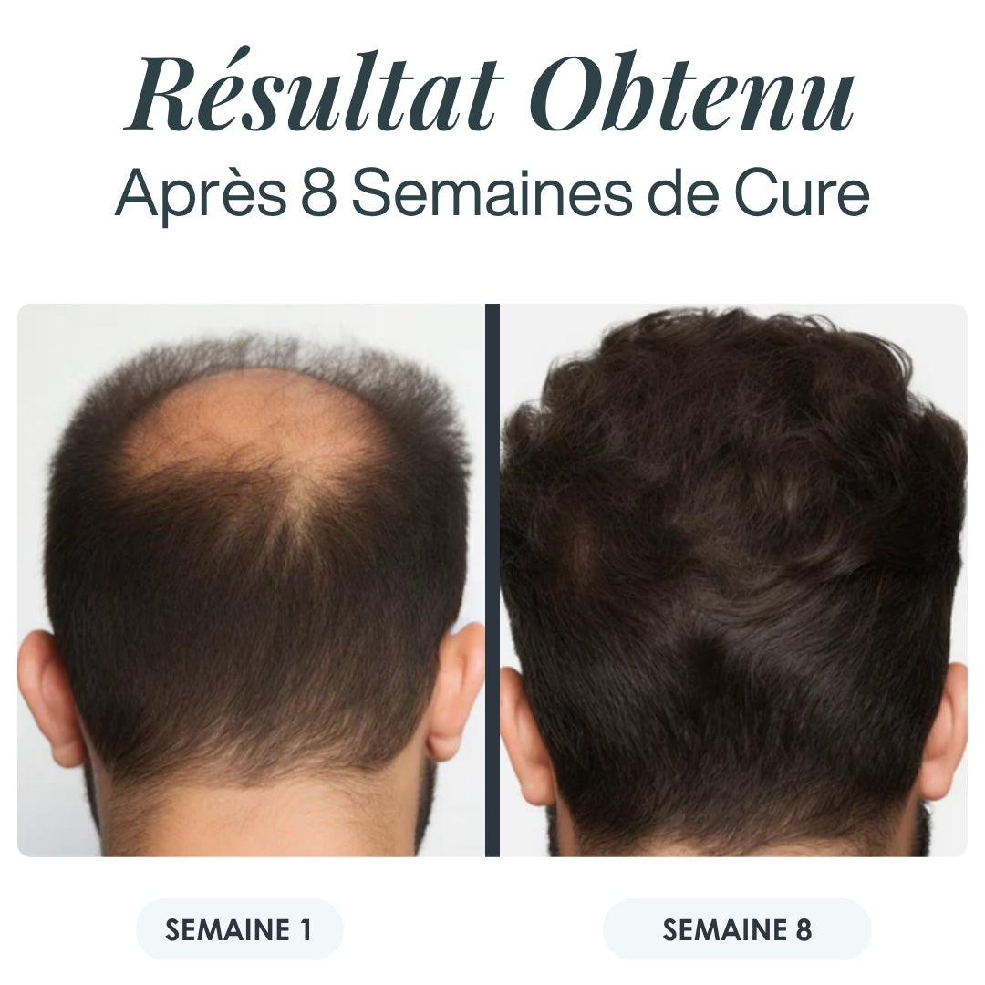 Je ne pensais pas voir un tel changement. Mes zones clairsemées se remplissent petit à petit, et mes cheveux ont retrouvé brillance et vitalité.